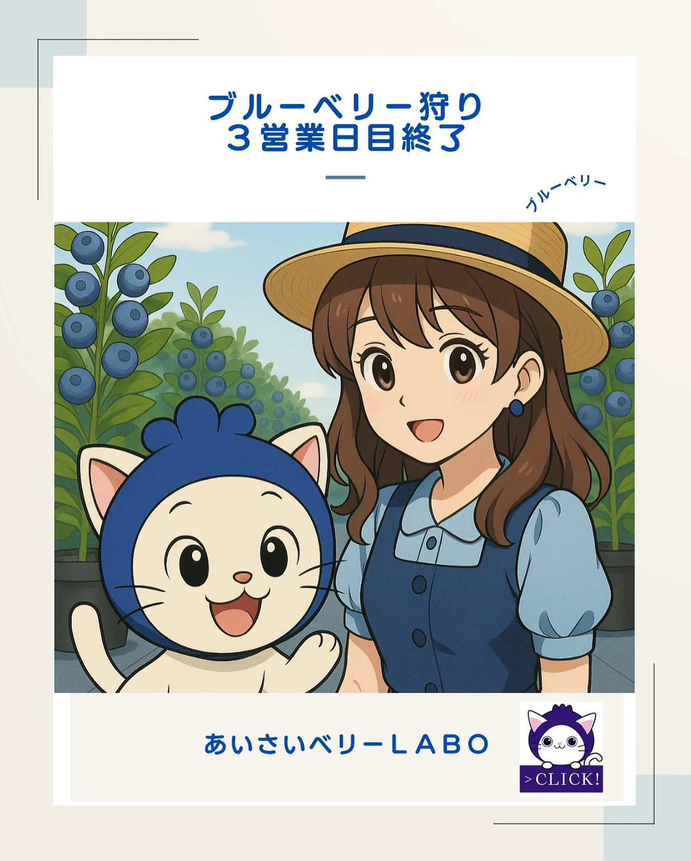 「今日もぼくのブルーベリーが大人気だったにゃ〜!もうカゴがすっからかんにゃ!(どやぁ)」