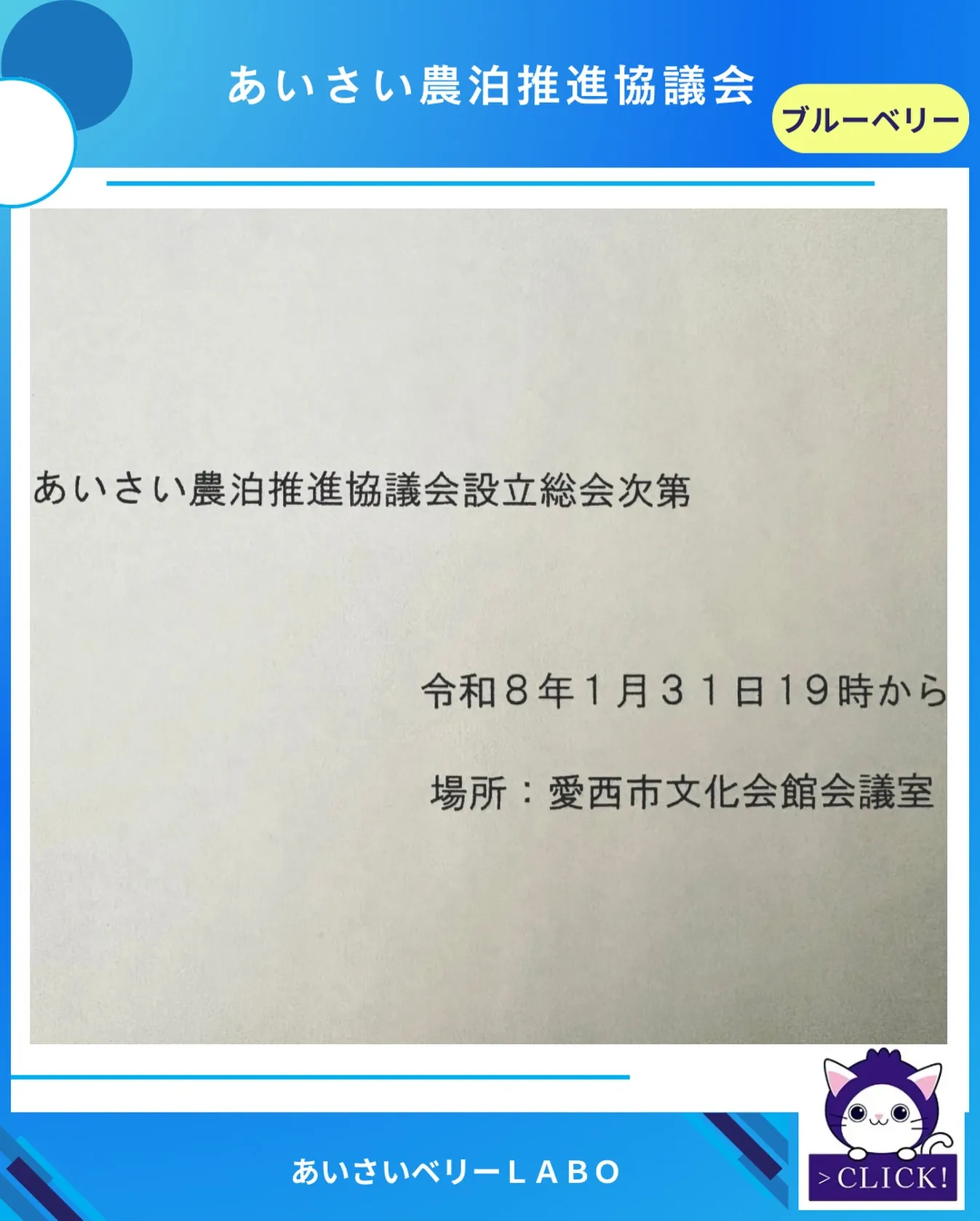 これね、『愛西農泊推進協議会(あいさいのうはくすいしんきょうぎかい)』っていう集まりのお知らせなの。