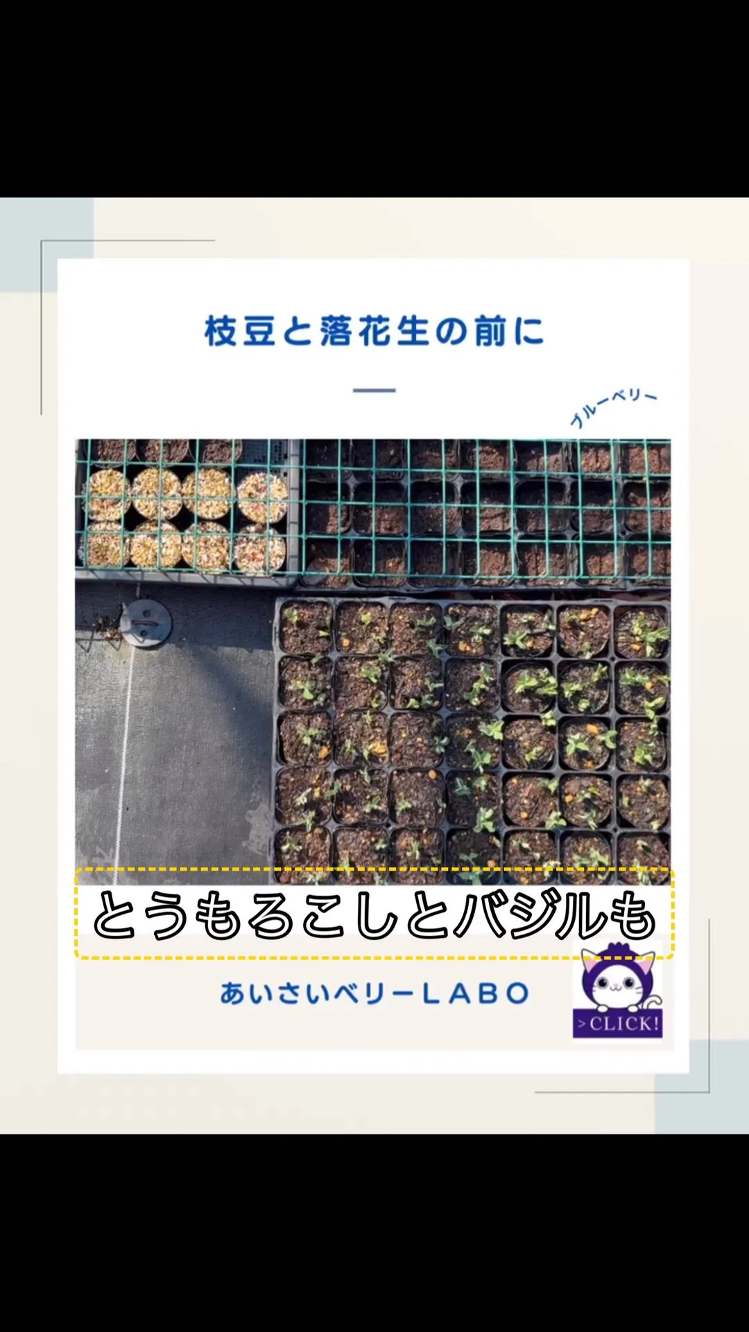 とうもろこしとバジルも とうもろこしとバジルも本年の野菜の販売については、豆類(スナップエンドウ、枝豆、落花生)を予定しておりますが、今後連作障害も出てきますから、とうもろこしとバジルもまいて練習します。5月には…