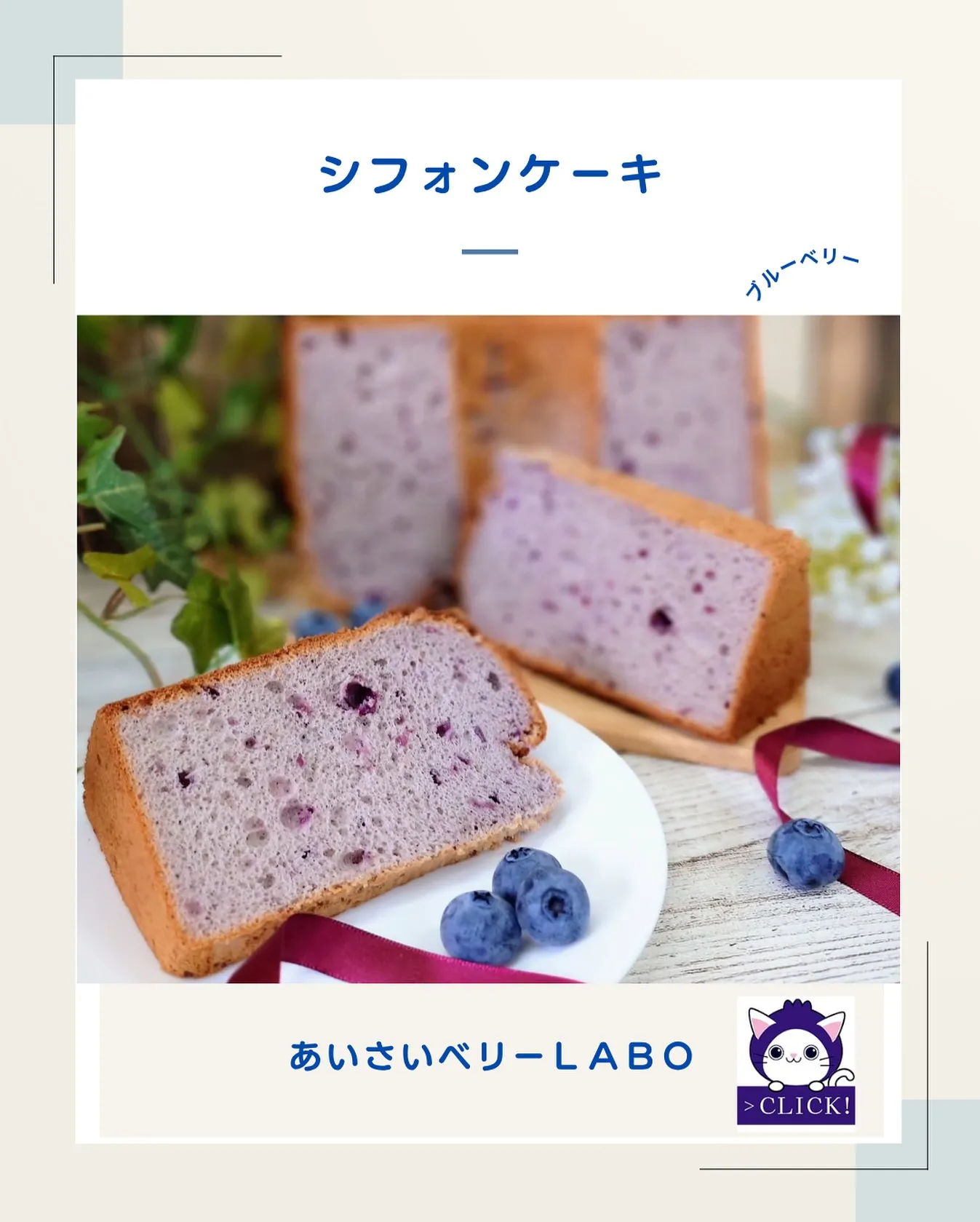 シフォンケーキ シフォンケーキ当園のブルーベリーを使ったchiffoncakePeTiTbOさんのシフォンケーキ!画像お借りしました笑昨年より色も鮮やかにパワーアップしてる!味も、きっと◎うちは現在、3店舗ほどしかお出しして…