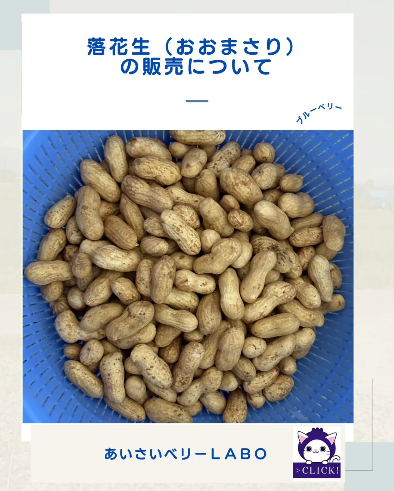 あいさいベリーLABOの落花生(おおまさり)の販売について あいさいベリーLABOの落花生(おおまさり)の販売について明日9月23日(祝火)販売します。場所は、HASUパークと自販機です。HASUパークはちゃんとまだ落花生の販売登録確認をしておらず…